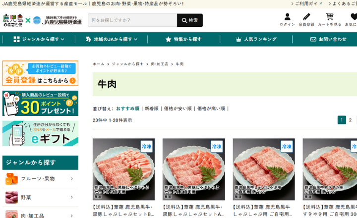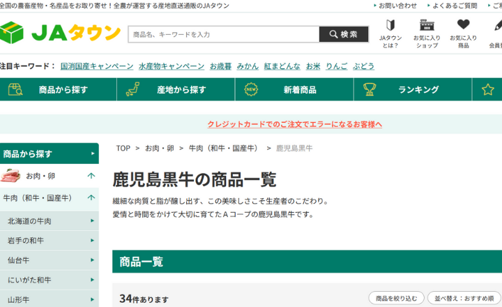JAタウン内にある「鹿児島コーナー」は、JAグループが直接運営している通販サイト。